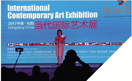 9月11日上午由松阳县人民政府和中国抽象艺术家协会主办的2017中国·松阳当代国际艺术展在松阳县非遗馆启幕,松阳县委宣传部部长汪健主持开幕式、副县长谢雅贞致辞。来自世界五大洲的36个国家和地区的50余位不同肤色的艺术家们齐聚松阳,在松阳展开为期一周的文化创作、交流。开幕式中他们纷纷上台以不同的语言和浪漫的情怀表达来松阳的无比喜悦的心情并点赞松阳。开幕式后各国艺术家们在松阳明清古街共同挥笔在连绵百米大幅长卷上现场集体创作,以不同的创意风格描绘作品,展现他们来松阳的采风创作激情,给大家留下了美好回忆。