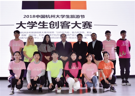 2018年11月29日上午,“2018中国杭州大学生旅游节”创客大赛决赛在浙江旅游职业学院南校区励志楼缙云厅举行。杭州市旅游委员会党委委员、市场处处长张安胜,浙江旅游职业学院党委书记、教授王昆欣,杭州思库文化创意有限公司CEO许欣儿等领导和嘉宾莅临创客大赛决赛现场,并担任大赛评委。