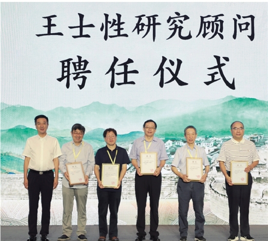 ▲临海市委副书记、政法委书记陈荣世向沈松平、朱海滨、潘捷军、吴松弟、徐建春(左至右)等教授、学者颁发顾问证书